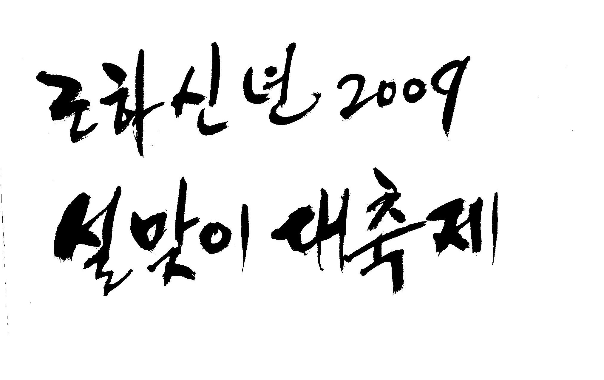 근하신년 2009 설맞이대축제 캘리 부탁드려요. 김철호 일반 3 16402 2009.01.14 10:45 > > A3 전단지 타이틀로 쓰려고 하는데요. > > ''근하신년 2009 설맞이대축제'' 캘리 부탁드립니다. > > 많은도움이 되주셔서 감사합니다. > > 유용하게 쓰세요..