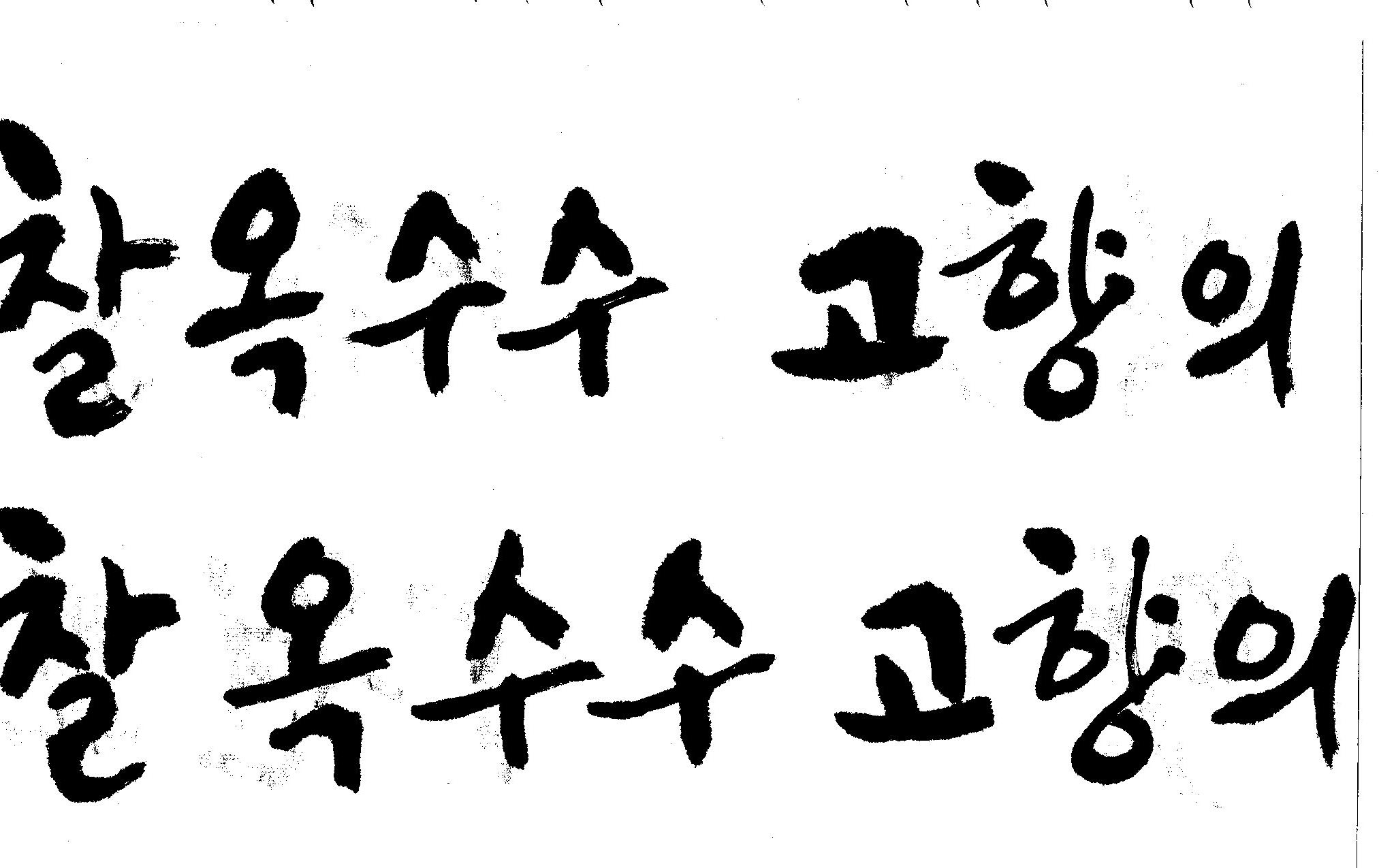 캘리고수님.. 캘리 부탁드립니다. 김철호 일반 1 10516 2008.10.31 15:44 > > 강원도 > 찰옥수수 > 고향의 맛 > > 이상의 문구 입니다. > 캘리 고수님들 시간되시면 도움 부탁드립니다.. > 유용하게 쓰시길 , 스캔이 깨끗하지 못해서 수고 좀 하셔야 겠네요.. "맛"이 라는 글자가 잘 않나와서 따로 올립니다.
